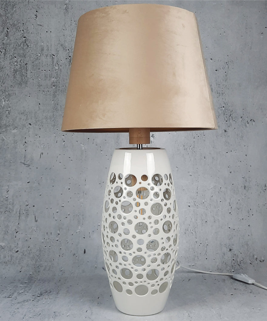 Lampa utrzymana jest w stylu lat dwudziestych. Smukła niczym antyczna rzeźba owinięta koronkowym szalem. Szczególnie duże otwory w podstawie lampy w porównaniu z innymi rzeźbami w kolekcji, pozwalają na bardziej rozproszone i bardzo oryginalne oświetlenie. Atmosfera jaką dają projekcje świetlne oraz połączenie możliwości świecenia różnych części lampy sprawiają, że stają się unikatowym dziełem sztuki użytkowej. Geometryczne wzornictwo w połączeniu z minimalistyczną oprawą i nowoczesną koncepcją nada każdemu otoczeniu niepowtarzalny wygląd.
